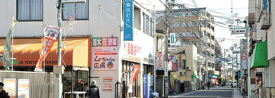 市内では、小金井公園や江戸東京たてもの園に最も近い商店会。武蔵小金井と小金井公園を結ぶココバスの停留所もあり、桜の季節にはお花見で通りが賑わう。住人に長く親しまれてきた地域密着のお店が多く、温かい雰囲気。玉川上水も近いので、散策がてら立ち寄ると楽しい。